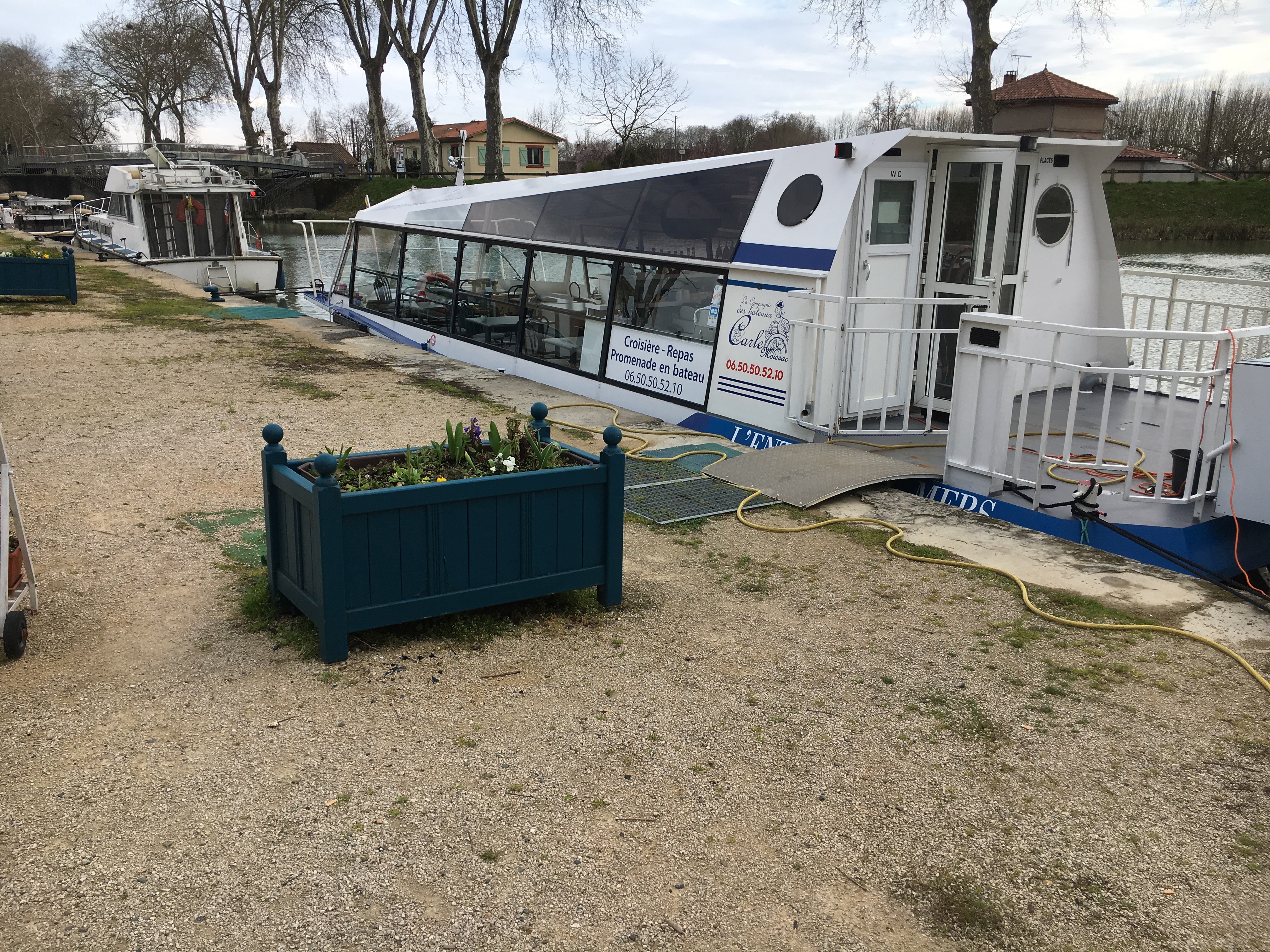 Pourtant, tout cela n’a pas effrayé Sylvie et Christian Carle, deux Rémois, professionnels de la plaisance, qui ont jeté leur dévolu sur Moissac. Ils y ont mis à flot leur bateau de croisière fluviale et après un an de navigation, ils tirent un bilan positif. Grâce à eux, la croisière s’amuse et fait bombance, avec de bons produits locaux accommodés par les traiteurs du coin. Du coup, les moissagais y prennent goût. Soixante pour cent de leur clientèle, le reste venant de plus loin, de Toulouse où on a repéré le bon plan. Le bonheur serait-il sur le port ? Presque ! Sylvie et Christian ont pourtant le sentiment d’être relégués en bout de quai, presque invisibles faute d’informations lisibles pour guider les touristes. Ils en ont parlé au maire qui s’est même offert un brin de promenade nautique. Sans résultat ! Ils lui ont fait remarquer que par gros temps, le sol des quais était boueux et les gravillons qui collent aux chaussures bien agressifs pour les ponts des embarcations. Les quais y ont gagné deux ou trois jardinières dans lesquelles se languissent quelques pauvres fleurs. Pour le reste ça attendra.