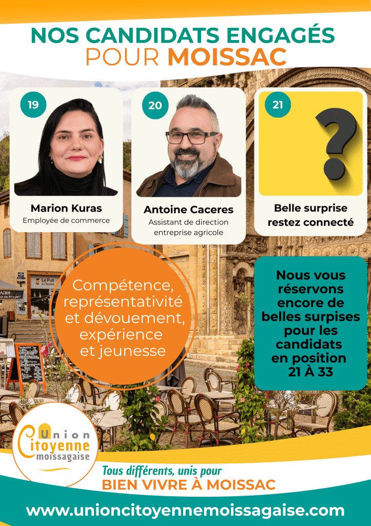 L’évènement était attendu et une centaine de Moissagais sont venus ce samedi matin rencontrer les candidats de l’UCM, s’informer sur le programme ou tout simplement discuter politique avec leur voisin ou leur voisine, un verre de jus de fruit ou de punch maison à la main. Certains s’interrogent? Y aura-t-il d’autres candidats? Mais où donc est passé le maire RN? A deux mois de l’élection, celui à qui la rumeur prête de grandes ambitions, n’est toujours pas sorti du bois. Pure tactique disent les vieux loups de la politique. Moins il s’expose et mieux il se porte! Il est vrai que cette discrétion le protège de prévisibles déconvenues, tant son bilan lui échappe comme sable entre les doigts. Moissac retient son souffle. Même pas! Deux autres candidatures ont bien été annoncées, mais elles ont semble-t-il du mal à prendre forme. On ne va pas s’en plaindre nous qui avons, ici même, plaidé de longue date pour un rassemblement des bonnes volontés. En attendant, Séverine Laurent est en campagne. Ça se voit, ça s’entend et ça donne espoir!